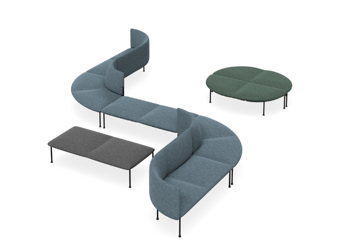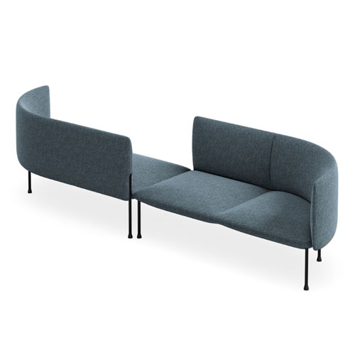 The Bowie range is a modular soft‑seating system designed to create flexible, contemporary breakout spaces with ease. Built around fully upholstered modular components, the range allows an extensive variety of layout combinations—including straight runs, corners, curves, and open or enclosed arrangements. Each unit features a comfortable, fabric‑upholstered seat and back paired with high‑density foam for long‑lasting support, while the black steel tube frame and legs provide a clean, modern profile suited to workplace and public environments.