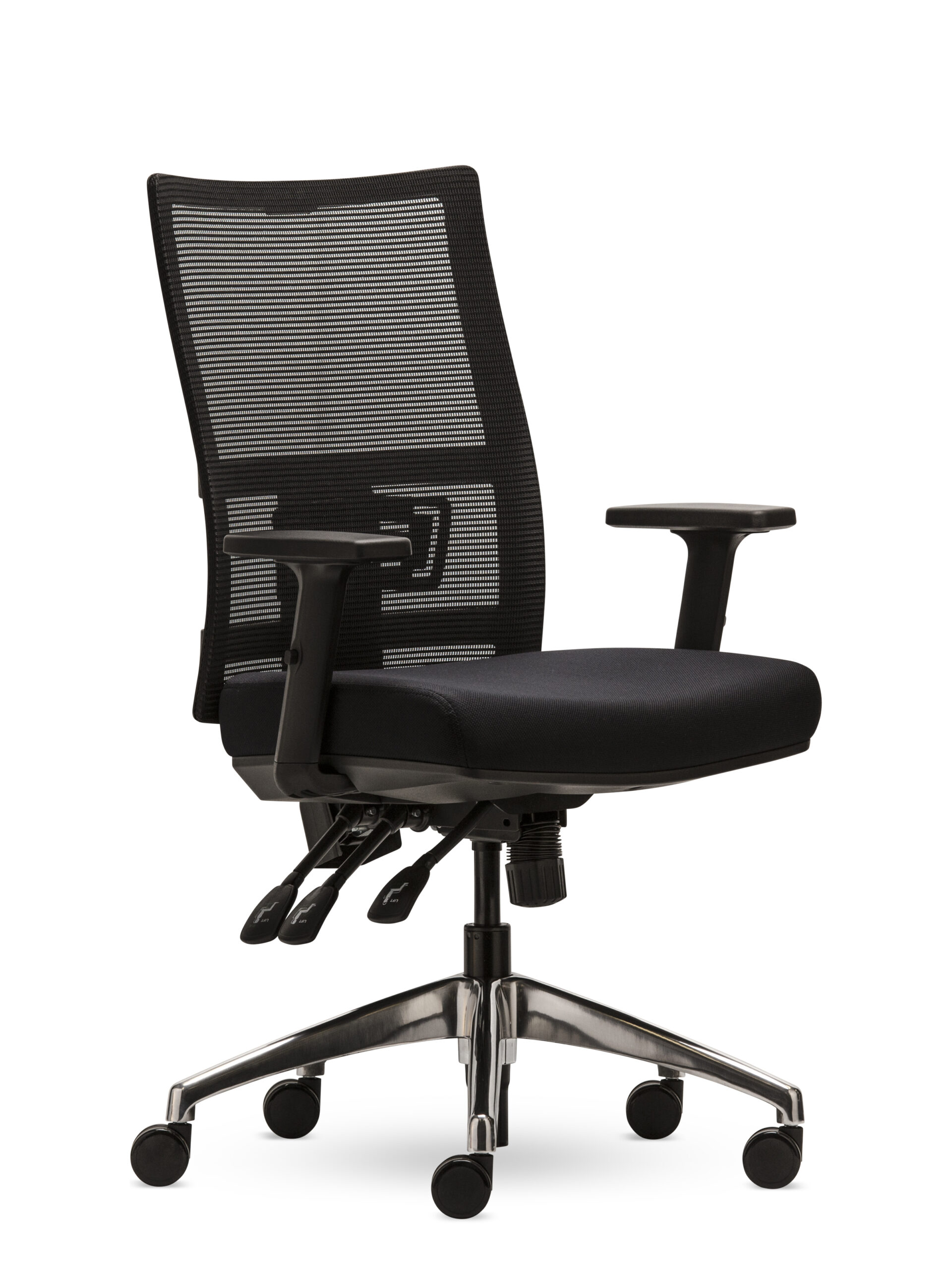 - Black or polished aluminium base for task and drafting chairs