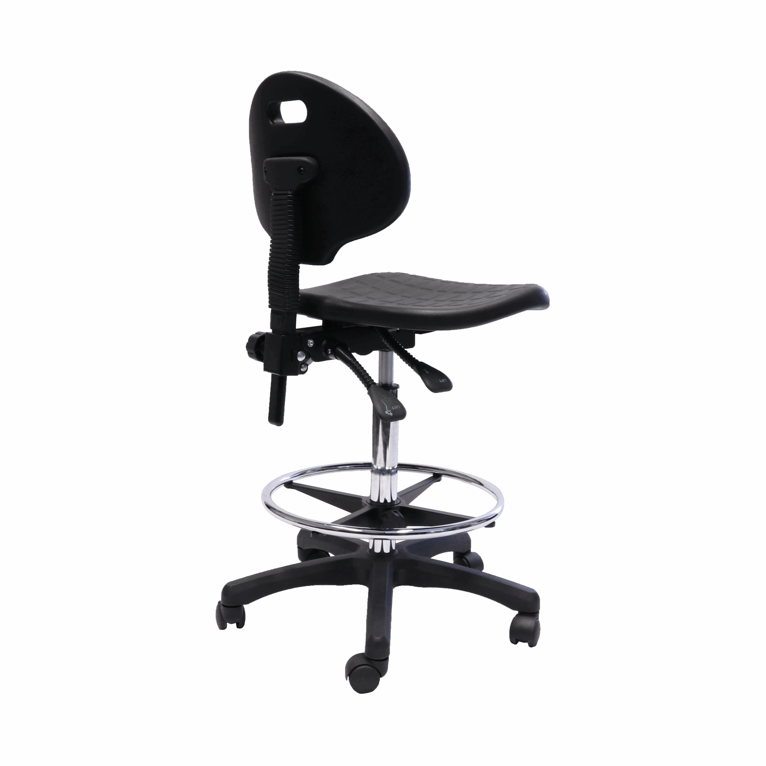 The Lab stool is a tough, practical seating option designed for busy lab and technical environments. Its moulded polyurethane seat and backrest make it durable, easy to clean, and resistant to spills—perfect for clinical, industrial, and education settings.