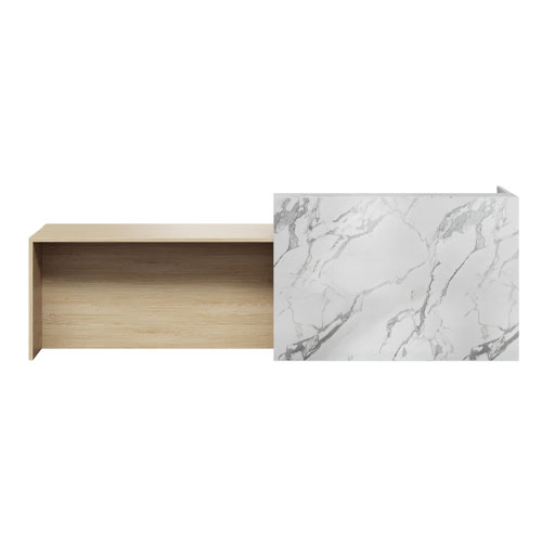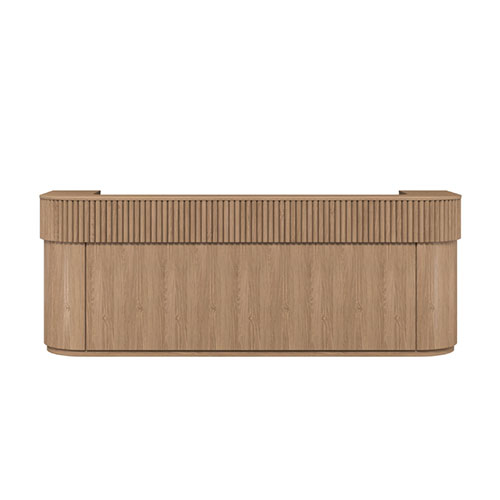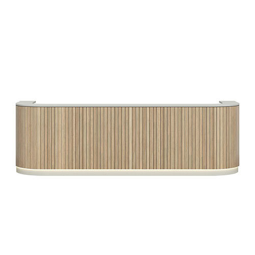 The Roxie is designed for expansive, high‑traffic settings where energy, scale, and flow shape the first impression. Its bold form is balanced by smooth visual transitions, creating a reception counter that feels active and engaging rather than static. The design reads clearly from a distance, helping anchor large entry spaces while guiding visitors intuitively toward the point of interaction.
